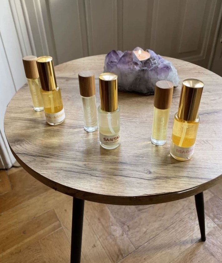 Celý podzim Bára zkoumala a mixovala, čichala a měnila a kapala a slívala, až z toho vznikly tři omamné vůně – Ambra-Ambra, Santal a Magnolia. Někdo má rád rollony a někdo spíš sprejík. Přijďte si čichnout, je to krása! (parfém je na bázi parfémářského ethanolu)